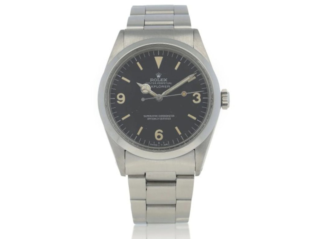 The Explorer Ref. 1016, launched in 1963 and continuously produced until 1989, is what most Rolexophiles envision today as the classic Explorer I. Like its predecessor, it marked the debut of another new Rolex movement, the automatic Caliber 1650, a chronometer-rated mainstay of that era’s Oyster Perpetual watches. It was also the first iteration of the Explorer to bear the lofty and now familiar inscription “Superlative Chronometer Officially Certified” on its dial, and was the first one whose Oyster case offered 100 meters of water resistance. As is its wont, Rolex tweaked and updated the Ref. 1016 over its ensuing years in production: Caliber 1560 gave way to the successor Caliber 1570, which added a hacking seconds function, and the radium-based luminous paint on the dials was discontinued in favor of a less-radioactive tritium-based substance (a transition which was, of course, taking place throughout the watchmaking industry as a whole at the time).